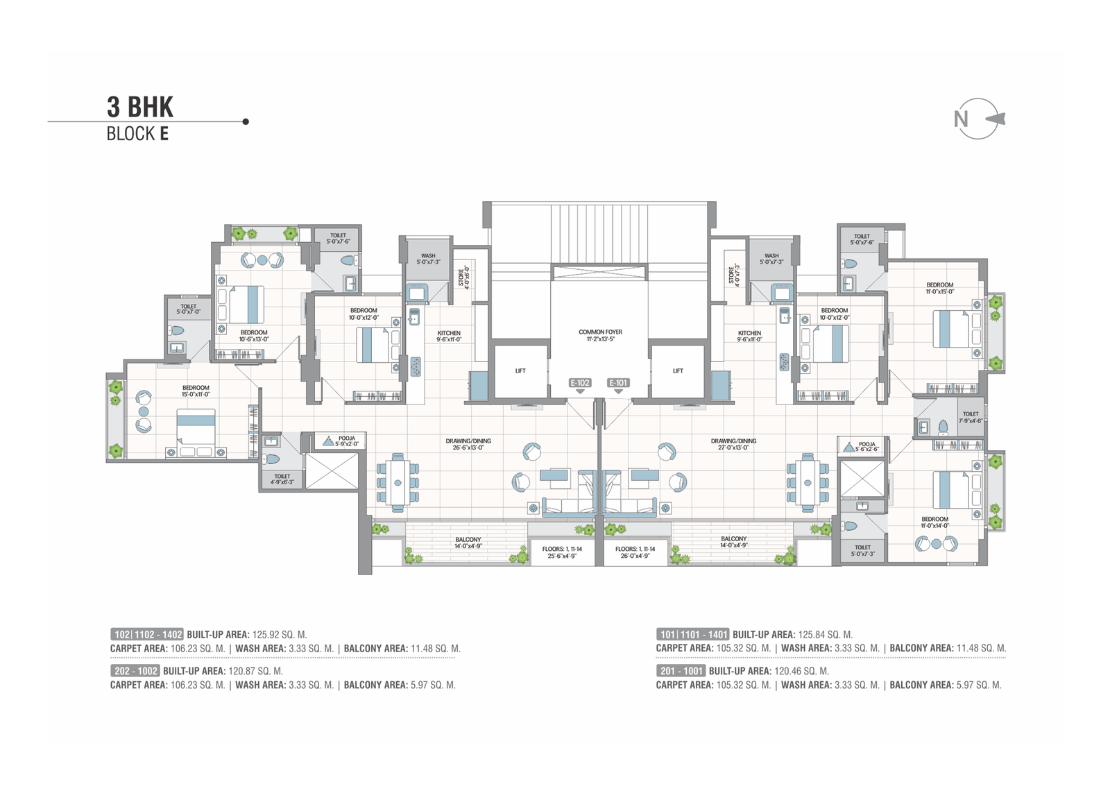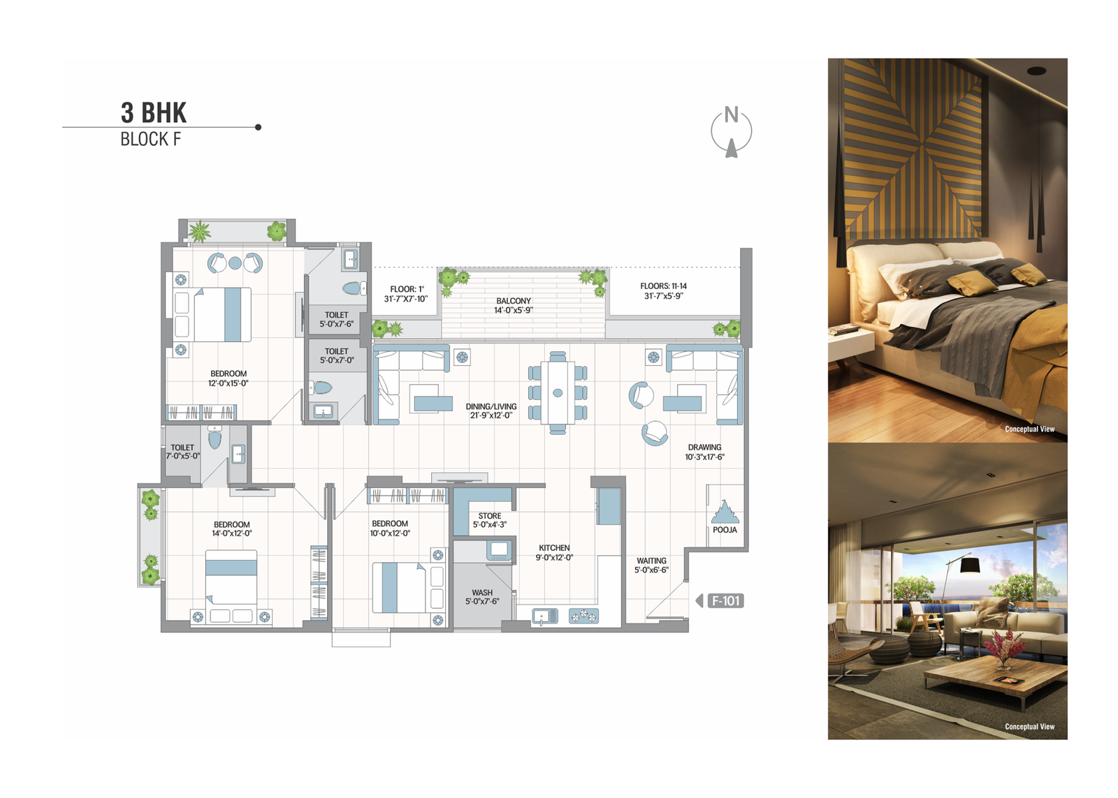 AC points. Provision for broadband, telecom & television.