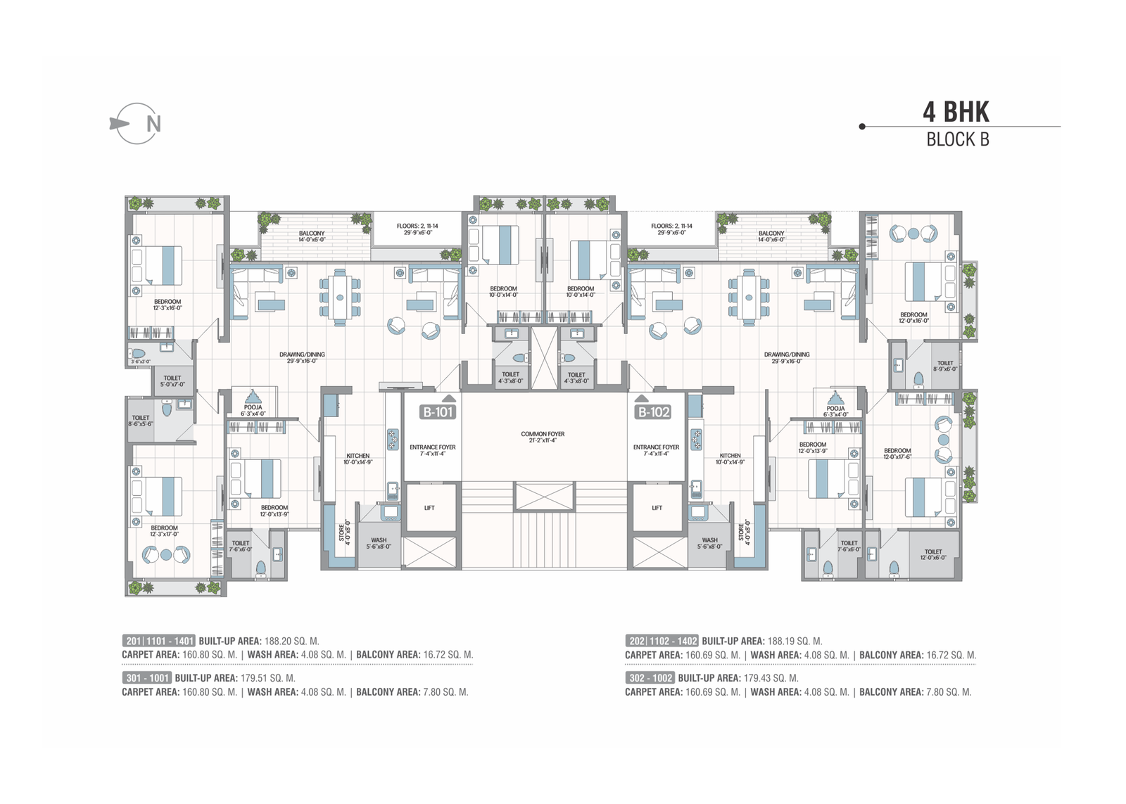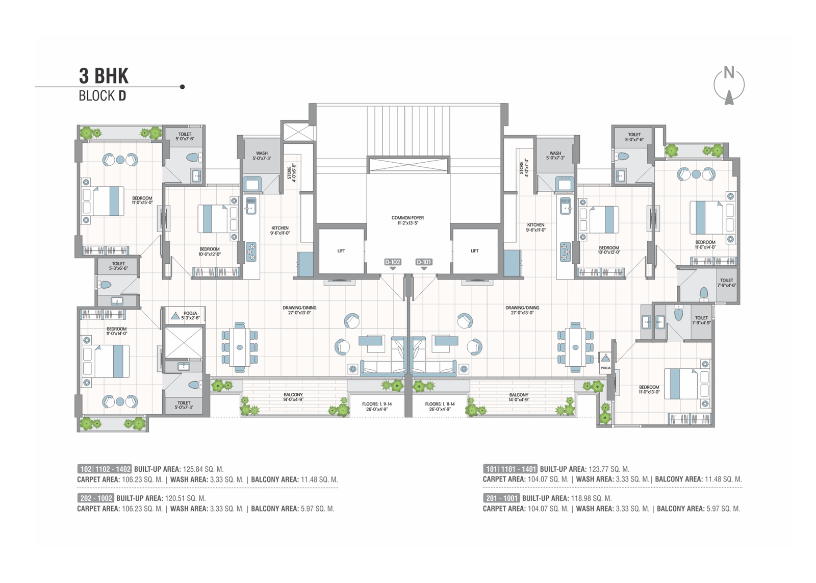 AC points. Provision for broadband, telecom & television.